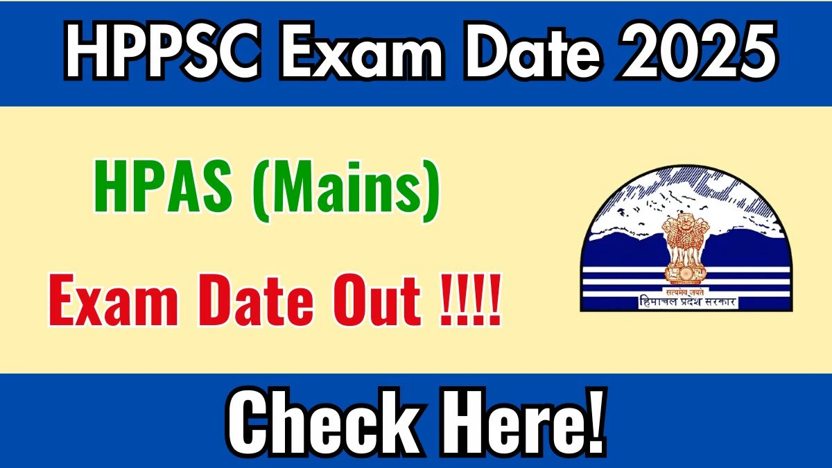 The Himachal Pradesh Public Service Commission has announced the Exam Date 2025 for the post of HPAS. Candidates can check the HPPSC Exam Date 2025 notification on the official website - hppsc.hp.gov.in. The examination is scheduled for 25th September 2025 to 1st October 2025. Further details about the HPPSC Exam Date 2025 can be obtained from our website. Download the HPPSC Exam Date 2025 from the provided website.