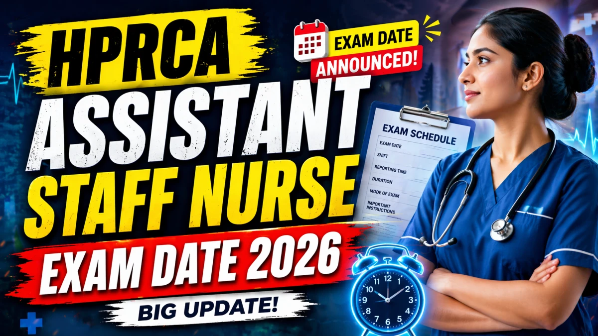 HPRCA Assistant Staff Nurse Exam Date 2026: The Himachal Pradesh Rajya Chayan Aayog (HPRCA), Hamirpur has officially released the exam date for the Assistant Staff Nurse recruitment (Post Code 25026). Candidates who have applied for the Assistant Staff Nurse posts can check the complete exam schedule below. The Computer-Based Test (CBT) is scheduled to be held on 4 May 2026 and 5 May 2026. All eligible female candidates are advised to download their admit cards and prepare accordingly.
