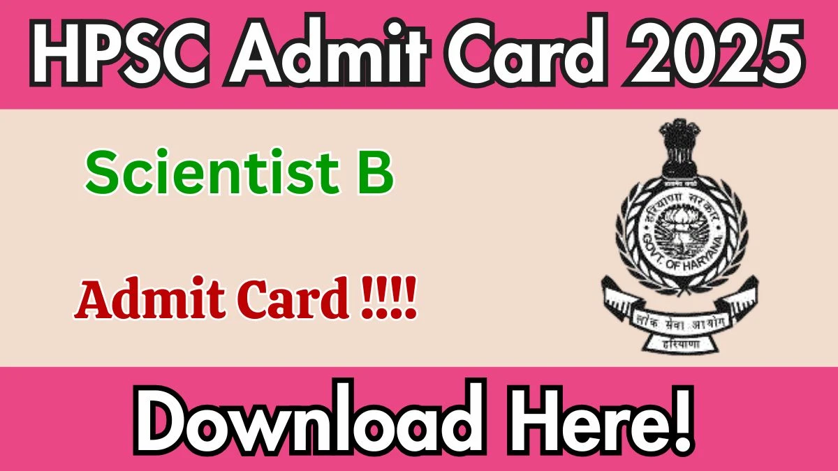 Download HPSC Scientist B Admit Card 2025 Soon! Get direct link, step-by-step process, and important exam details. Visit hpsc.gov.in to download.