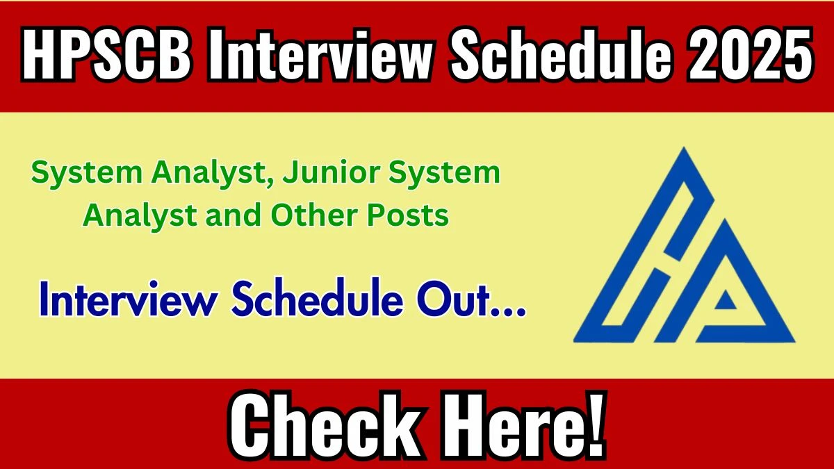 Himachal Pradesh State Co-operative Bank (HPSCB) System Analyst, Junior System Analyst and Other Posts Interview Schedule 2025 |