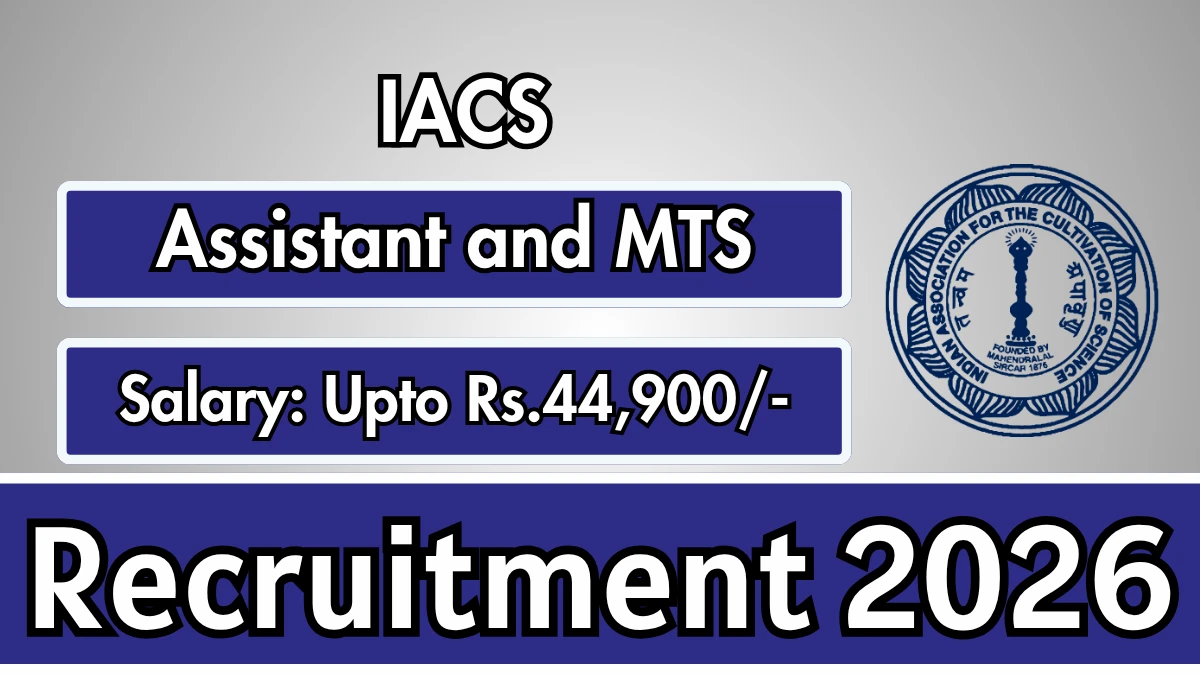 Candidates who have a Bachelor’s Degree or have passed Matriculation are eligible to apply for these Assistant and MTS vacancies. The application process for IACS Recruitment 2026 is being conducted in offline mode, and the last date to submit the application is 19 April 2026.