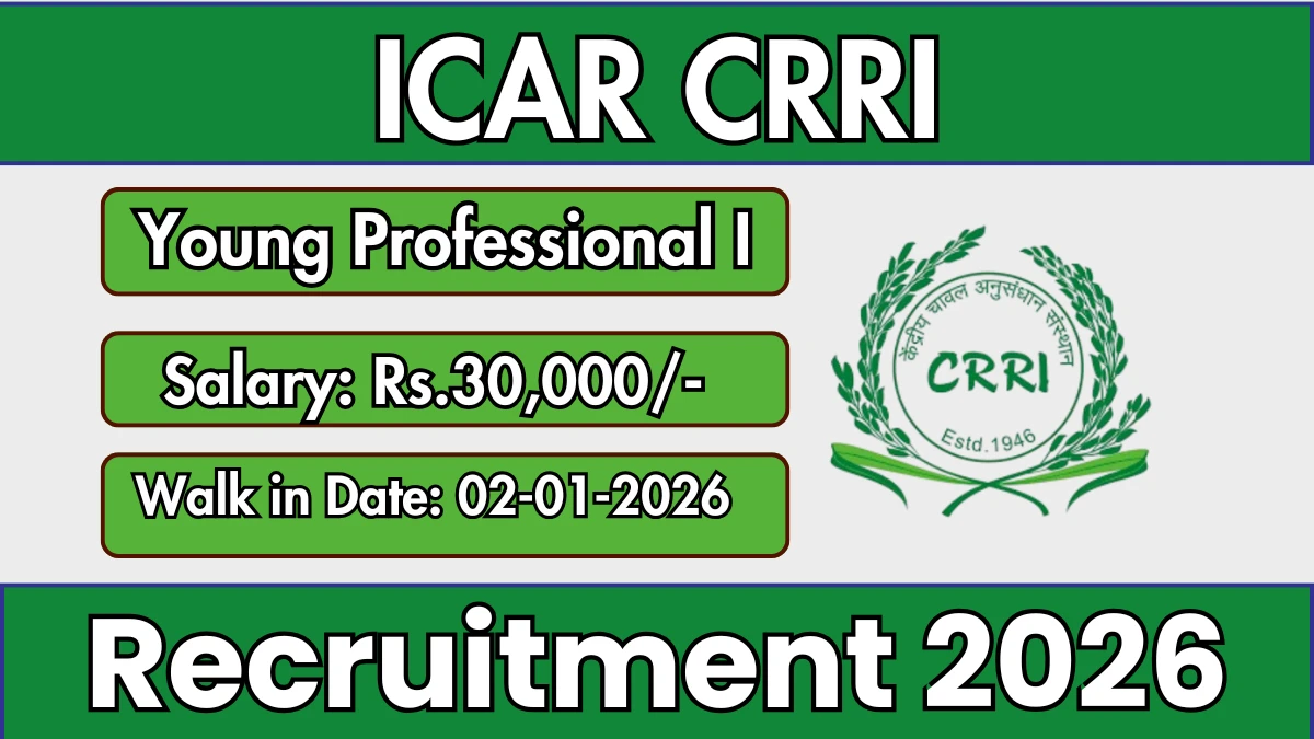 ICAR Central Rice Research Institute (ICAR CRRI) Recruitment 2026 for 01 posts of Young Professional I. Candidates with B.Sc Can attend the walkin. The Walk-in on 02-01-2026. For detailed information please visit ICAR CRRI official website, icar-crri.in.