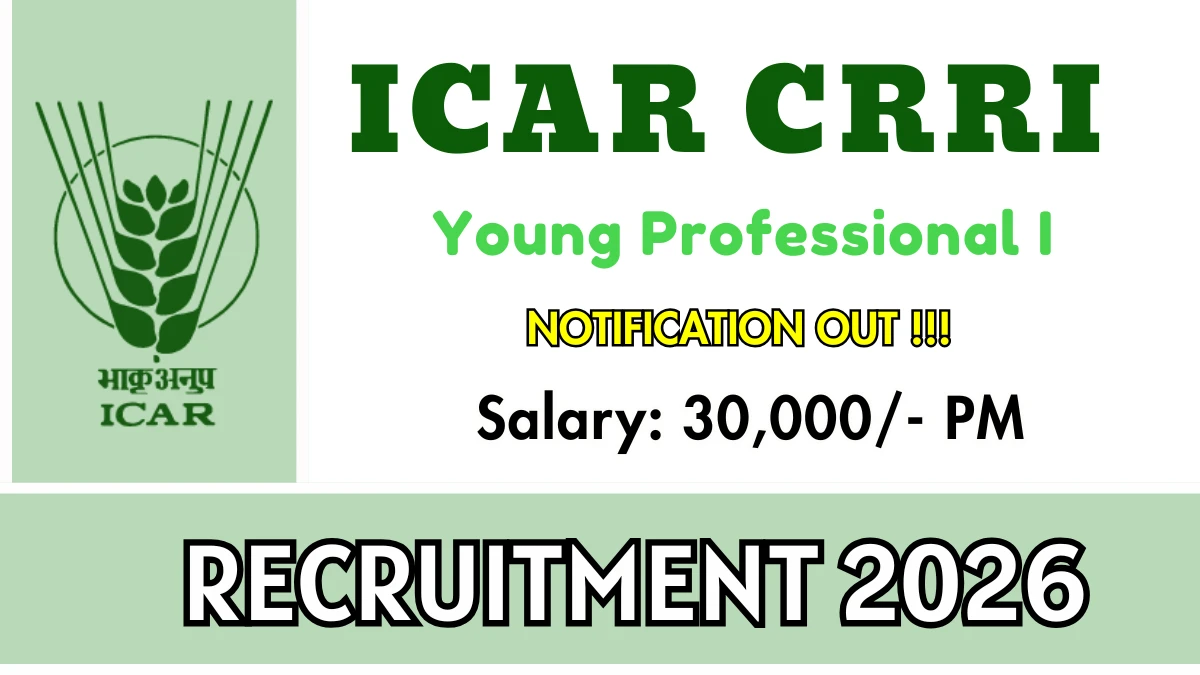ICAR Central Rice Research Institute (ICAR CRRI) Recruitment 2026 for 02 posts of Young Professional I. Candidates with B.Sc Can attend the walkin. The Walk-in on 12-02-2026. For detailed information please visit ICAR CRRI official website, icar-crri.in.