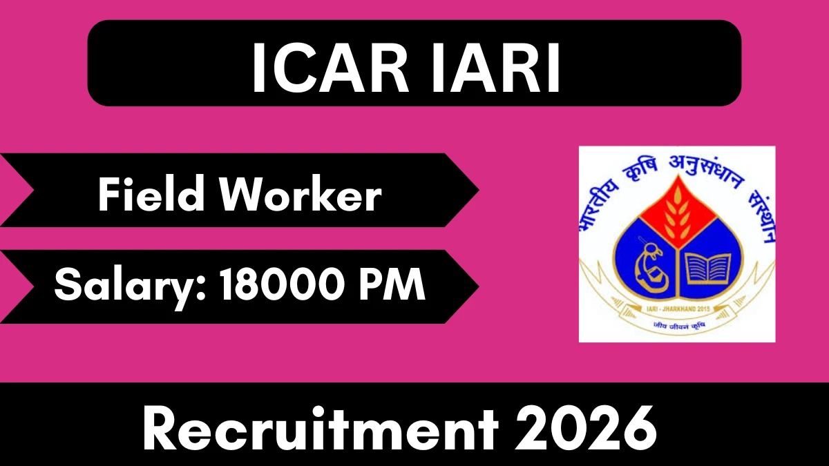 Indian Agricultural Research Institute (ICAR IARI) has released 01 Field Worker vacancy. Eligible candidates with B.Sc can apply online Application Closes On January 27, 2026, at iari.res.in.