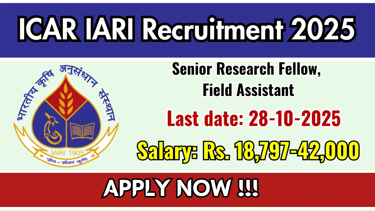 Indian Agricultural Research Institute (ICAR IARI) has released an official notification for the recruitment of 02 Senior Research Fellow, Field Assistant Posts. Interested and eligible candidates can apply Offline through the official ICAR IARI website. The last date to submit the application form is 28-10-2025. In this article, you’ll find the ICAR IARI Senior Research Fellow, Field Assistant Posts recruitment details, including eligibility criteria, age limit, salary structure, selection process, application steps, and direct links to the official notification and Offline application form.