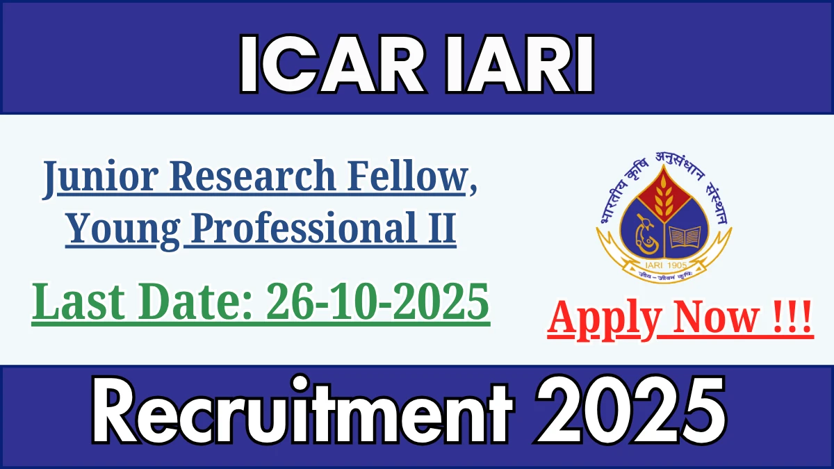 Indian Agricultural Research Institute (ICAR IARI) has released an official notification for the recruitment of 02 Junior Research Fellow, Young Professional II Posts. Interested and eligible candidates can apply Offline through the official ICAR IARI website. The last date to submit the application form is 26-10-2025. In this article, you’ll find the ICAR IARI Junior Research Fellow, Young Professional II Posts recruitment details, including eligibility criteria, age limit, salary structure, selection process, application steps, and direct links to the official notification and Offline application form.