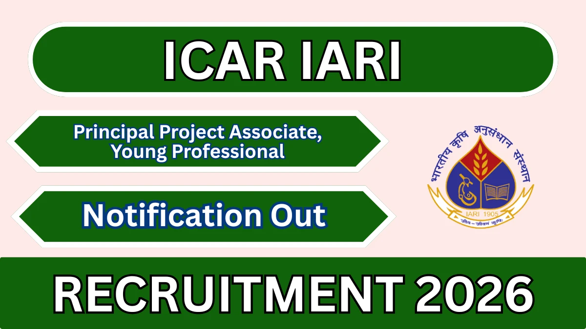 ICAR Indian Agricultural Research Institute (ICAR IARI) Principal Project Associate and Young Professional-II Notification 2026 has been released on the official website. A total of 2 vacancies have been announced through the ICAR IARI Principal Project Associate and Young Professional-II Recruitment 2026.