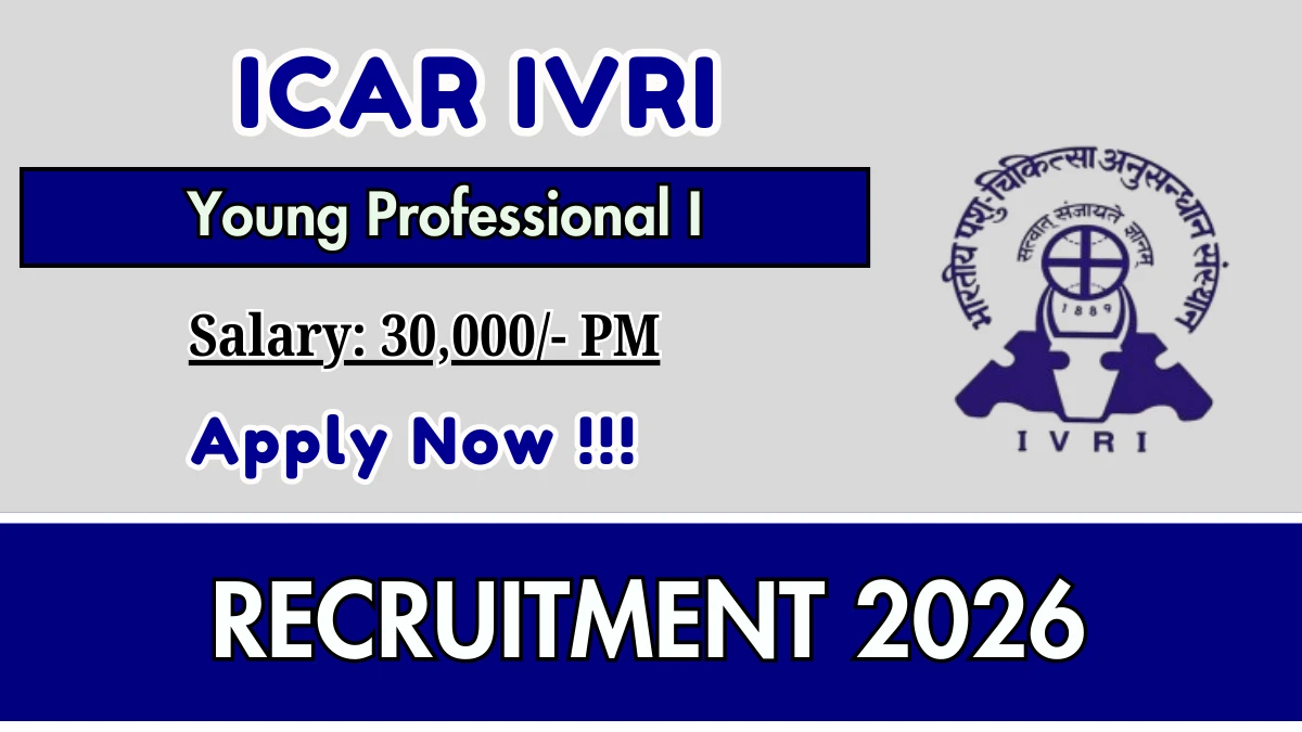 Indian Veterinary Research Institute (ICAR-IVRI) Recruitment 2026: Indian Veterinary Research Institute is conducting a Walk-in Interview for 1 Young Professional posts. This recruitment provides an excellent opportunity for eligible candidates to attend the interview directly without any prior online application.The Walk-in Interview is scheduled on 19 March 2026. Candidates are strongly advised to report at the venue with all required documents well before the scheduled time. Below, you can find complete details of Young Professional Walk-in Recruitment 2026, including vacancy breakdown, eligibility, age limit, salary, walk-in schedule, venue, and important links.