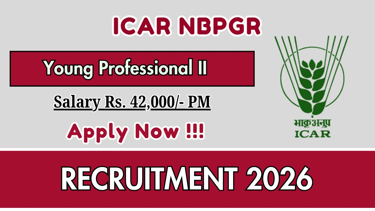 National Bureau of Plant Genetic Resources (ICAR NBPGR) Young Professional II Notification 2026 has been released on the official website of ICAR NBPGR. A total of 1 vacancy has been announced through the ICAR NBPGR Young Professional II Recruitment 2026. Candidates aged 21 to 45 years who have a Master's degree in Plant Breeding/Genetics/Agricultural Botany/Horticulture/Botany with 60% or above marks are eligible to apply for these Young Professional II vacancies. The application process for ICAR NBPGR Young Professional II Recruitment 2026 will be conducted through a walk-in interview scheduled on 13 April 2026.