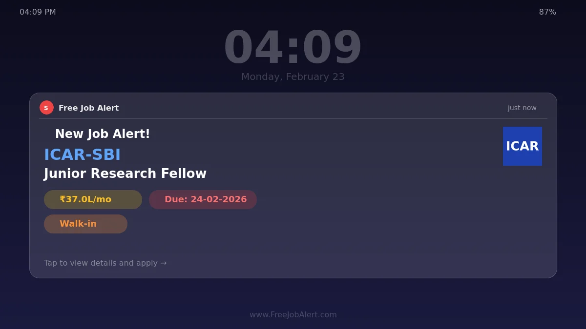 Download ICAR-SBI Junior Research Fellow Job 2026 Notification PDF
