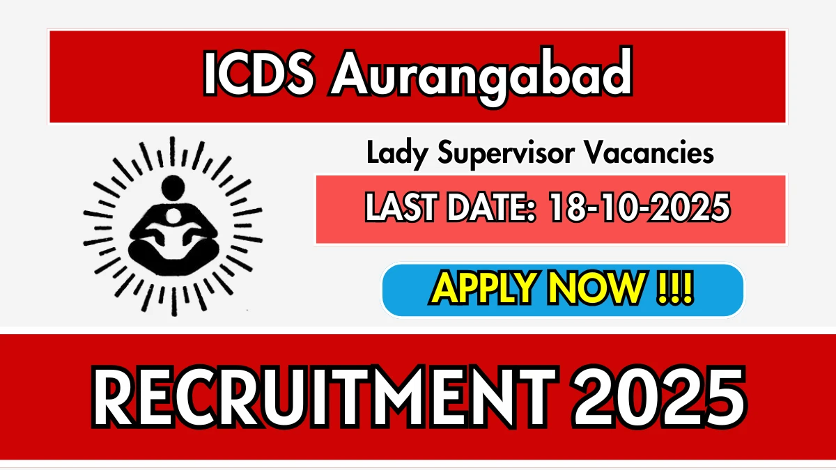 Integrated Child Development Services Aurangabad (ICDS Aurangabad) has released an official notification for the recruitment of 16 Lady Supervisor Posts. Interested and eligible candidates can apply Online through the official ICDS Aurangabad website. The last date to submit the application form is 18-10-2025. In this article, you’ll find the ICDS Aurangabad Lady Supervisor Posts recruitment details, including eligibility criteria, age limit, salary structure, selection process, application steps, and direct links to the official notification and Online application form.