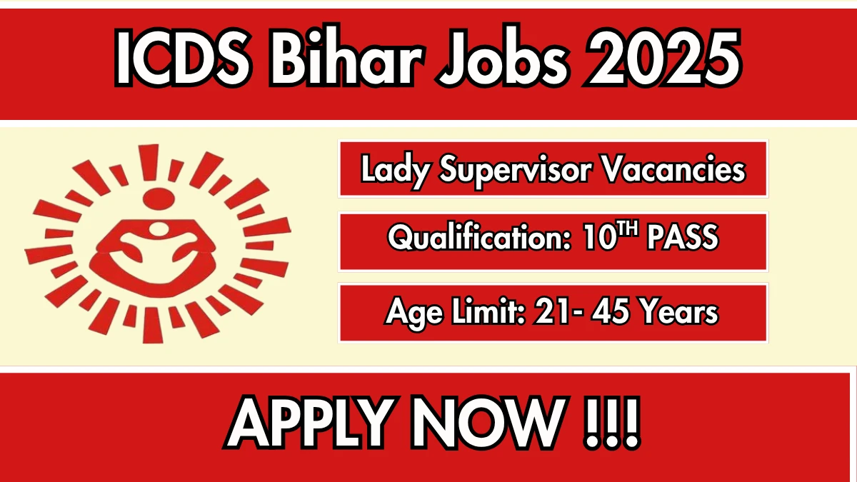 Integrated Child Development Services Bihar (ICDS Bihar) has released an official notification for the recruitment of 20 Lady Supervisor Posts. Interested and eligible candidates can apply Online through the official ICDS Bihar website. The last date to submit the application form is 31-10-2025. In this article, you’ll find the ICDS Bihar Lady Supervisor Posts recruitment details, including eligibility criteria, age limit, salary structure, selection process, application steps, and direct links to the official notification and Online application form.
