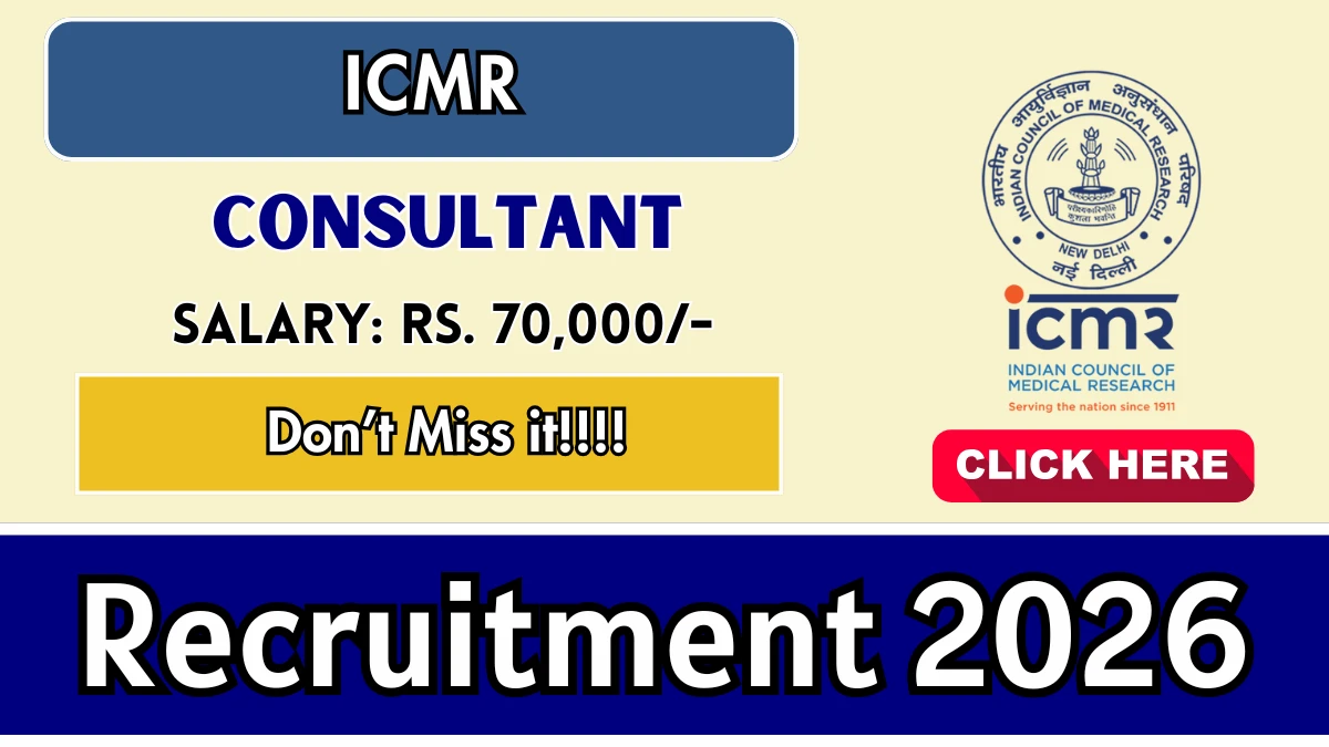Indian Council of Medical Research (ICMR) Recruitment 2026 for 01 posts of Consultant. Candidates with BCA, ICWA, LLM, M.A, M.Com Can attend the walkin. The Walk-in on 06-02-2026. For detailed information please visit ICMR official website, icmr.gov.in.