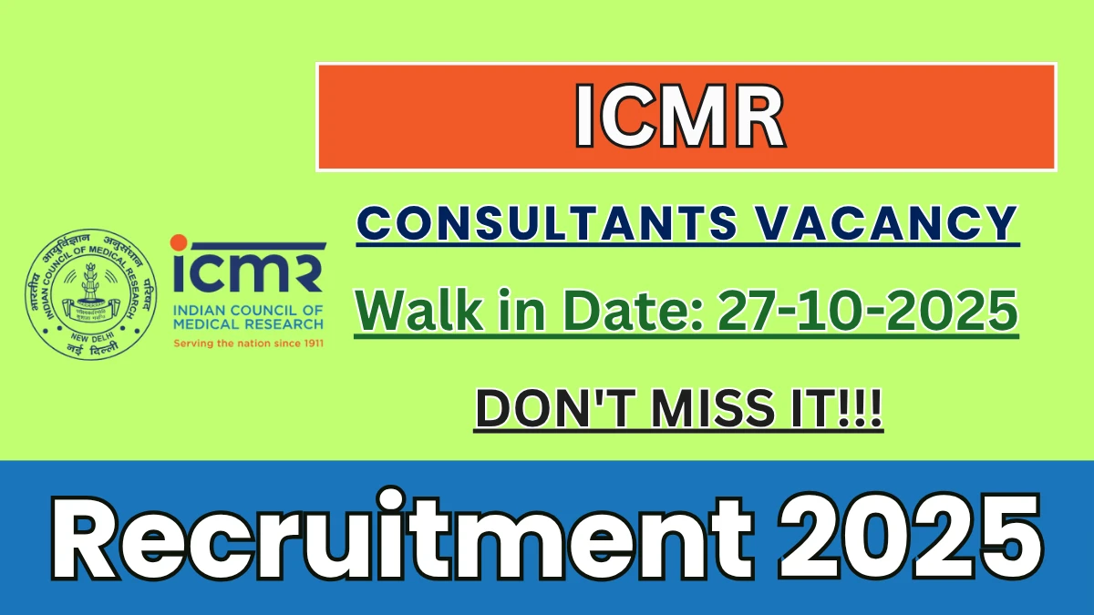 Indian Council of Medical Research (ICMR) Recruitment 2025 for 02 posts of Consultants. Candidates with Any Bachelors Degree Can attend the walkin. The Walk-in on 27-10-2025. For detailed information please visit ICMR official website, icmr.gov.in.