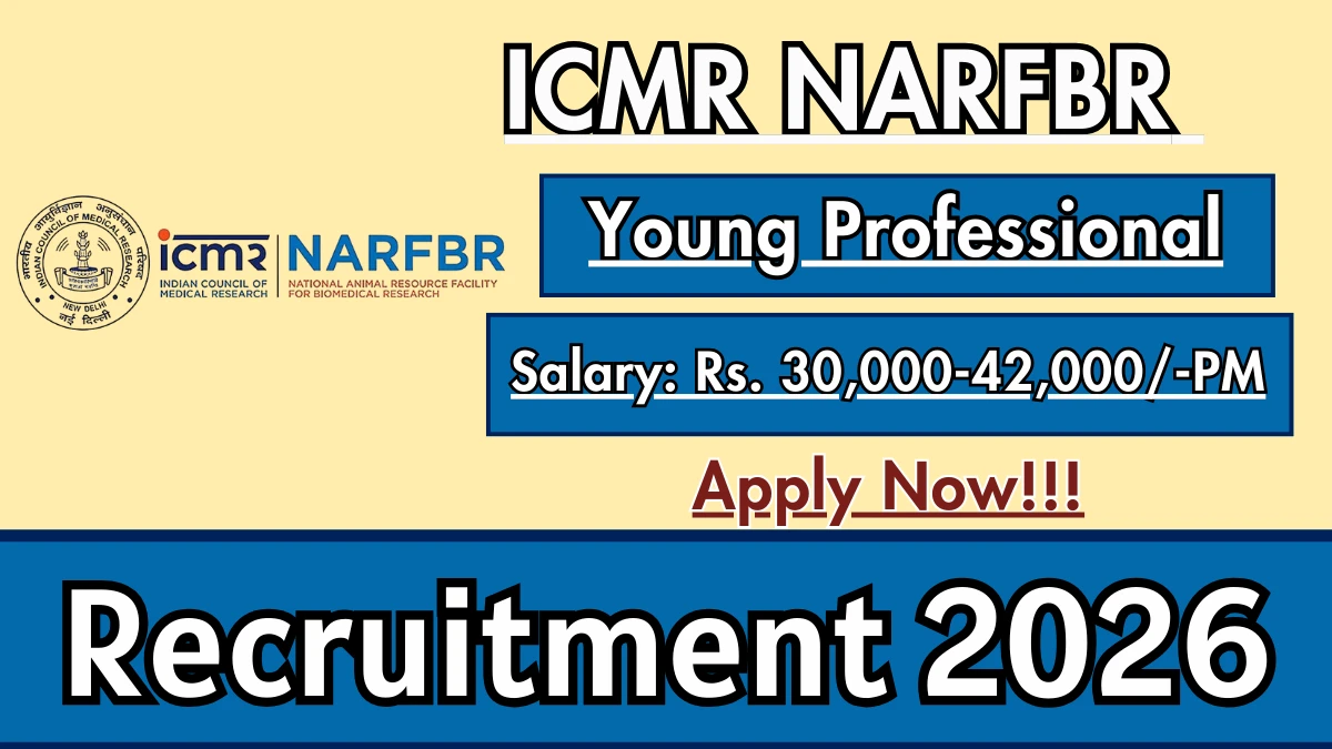 National Animal Resource Facility for Biomedical Research (ICMR NARFBR) has released an official notification for the recruitment of 04 Young Professional Posts. Interested and eligible candidates can apply Offline through the official ICMR website. The last date to submit the application form is 24-02-2026. In this article, you’ll find the ICMR NARFBR Young Professional Posts recruitment details, including eligibility criteria, age limit, salary structure, selection process, application steps, and direct links to the official notification and Offline application form.