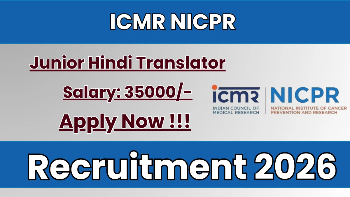 National Institute of Cancer Prevention and Research (ICMR NICPR) Recruitment 2026: National Institute of Cancer Prevention and Research has released the official notification for 1 Junior Hindi Translator posts, inviting applications from eligible candidates in Uttar Pradesh. This recruitment provides an excellent opportunity for candidates seeking stable and well-paid government jobs.