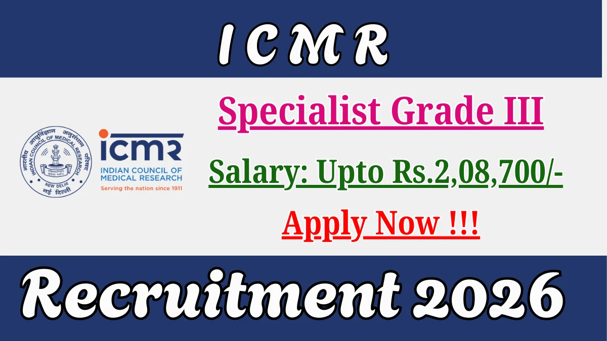 Indian Council of Medical Research (ICMR) has released an official notification for the recruitment of 05 Specialist Grade III Posts. Interested and eligible candidates can apply Online through the official ICMR website. The last date to submit the application form is 28-02-2026. In this article, you’ll find the ICMR Specialist Grade III Posts recruitment details, including eligibility criteria, age limit, salary structure, selection process, application steps, and direct links to the official notification and Online application form.