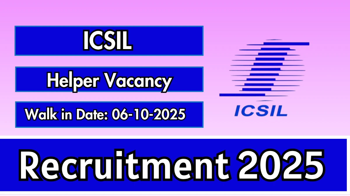 Intelligent Communication Systems (ICSIL) Recruitment 2025 for 01 posts of Helper. Candidates with 8TH Can attend the walkin. The Walk-in on 06-10-2025. For detailed information please visit ICSIL official website, icsil.in.