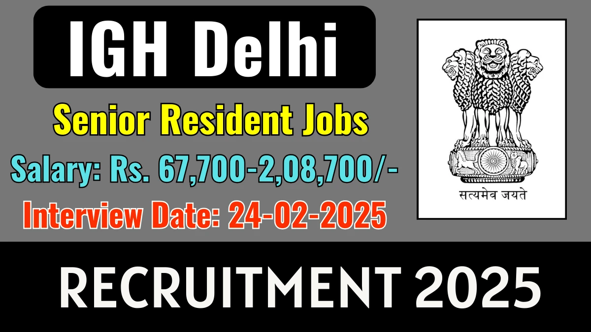 IGH Delhi has announced a recruitment drive for filling Senior Resident Vacancies; Read official notification and attend the interview 24-02-2025.