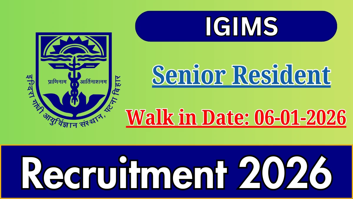 Indira Gandhi Institute of Medical Sciences (IGIMS) Recruitment 2025 for 11 posts of Senior Resident. Candidates with MS/MD Can attend the walkin. The Walk-in on 06-01-2026. For detailed information please visit IGIMS official website, igims.org.