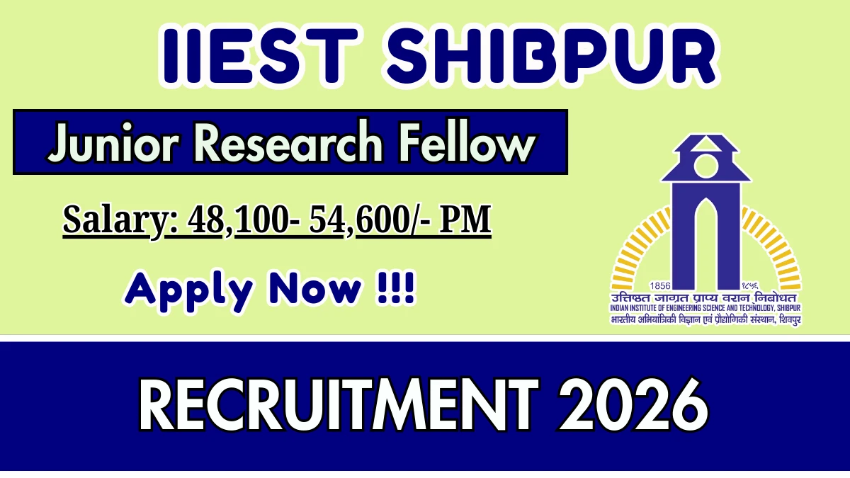 Indian Institute of Engineering Science and Technology Shibpur (IIEST Shibpur) Recruitment 2026: Indian Institute of Engineering Science and Technology Shibpur is conducting a Walk-in Interview for 1 Junior Research Fellow (JRF) posts. This recruitment provides an excellent opportunity for eligible candidates to attend the interview directly without any prior online application.