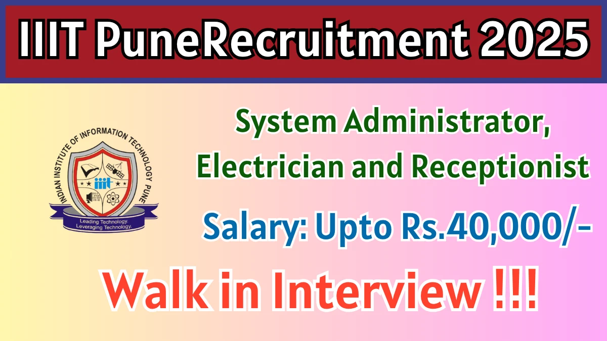 Indian Institute of Information Technology Pune (IIIT Pune) Recruitment 2025 for 05 posts of System Administrator, Electrician and More. Candidates with Any Bachelors Degree, B.Tech/B.E, Diploma, ITI, Any Masters Degree, MCA Can attend the walkin. The Walk-in starts from 16-10-2025, and ends on 27-10-2025. For detailed information please visit IIIT Pune official website, iiitp.ac.in.