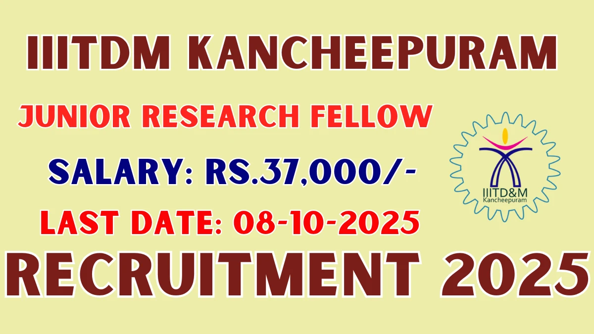 Indian Institute of Information Technology Design and Manufacturing Kancheepuram (IIITDM Kancheepuram) has released an official notification for the recruitment of 01 Junior Research Fellow Posts. Interested and eligible candidates can apply Online through the official IIITDM Kancheepuram website. The last date to submit the application form is 08-10-2025. In this article, you’ll find the IIITDM Kancheepuram Junior Research Fellow Posts recruitment details, including eligibility criteria, age limit, salary structure, selection process, application steps, and direct links to the official notification and Online application form.