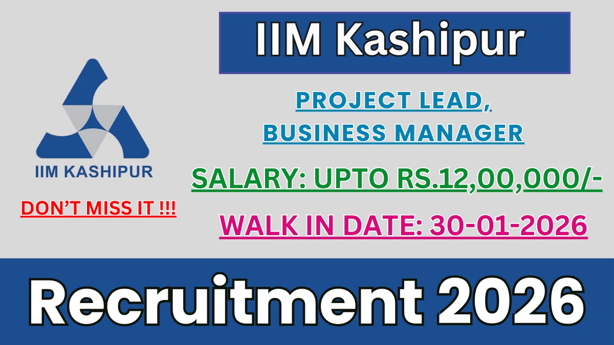 Indian Institute of Management Kashipur (IIM Kashipur) Recruitment 2026 for posts of Project Lead, Business Manager. Candidates with Any Post Graduate Can attend the walkin. The Walk-in on 30-01-2026. For detailed information please visit IIM Kashipur official website, iimkashipur.ac.in.