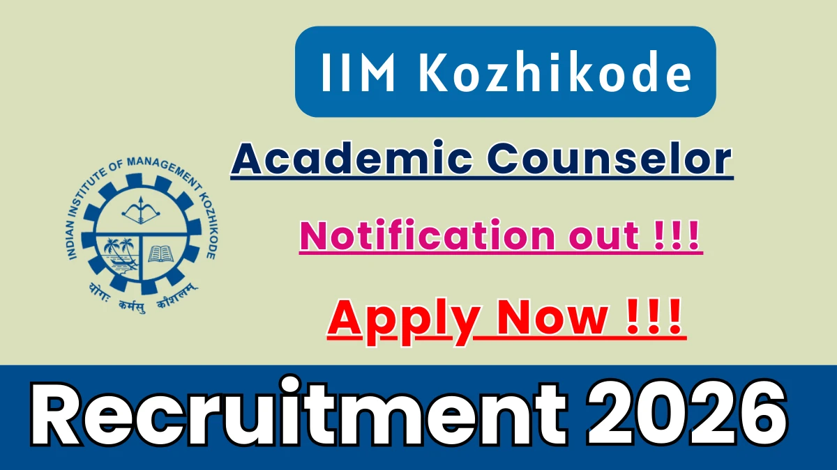 Indian Institute of Management Kozhikode (IIM Kozhikode) has released an official notification for the recruitment of 02 Academic Counselor Posts. Interested and eligible candidates can apply Online through the official IIM Kozhikode website. The last date to submit the application form is 10-03-2026. In this article, you’ll find the IIM Kozhikode Academic Counselor Posts recruitment details, including eligibility criteria, age limit, salary structure, selection process, application steps, and direct links to the official notification and Online application form.
