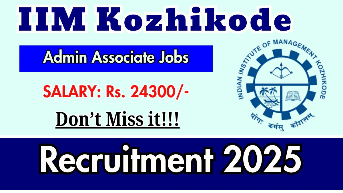 Indian Institute of Management Kozhikode (IIM Kozhikode) has released an official notification for the recruitment of 01 Admin Associate Posts. Interested and eligible candidates can apply Online through the official IIM Kozhikode website. The last date to submit the application form is 26-11-2025. In this article, you’ll find the IIM Kozhikode Admin Associate Posts recruitment details, including eligibility criteria, age limit, salary structure, selection process, application steps, and direct links to the official notification and Online application form.