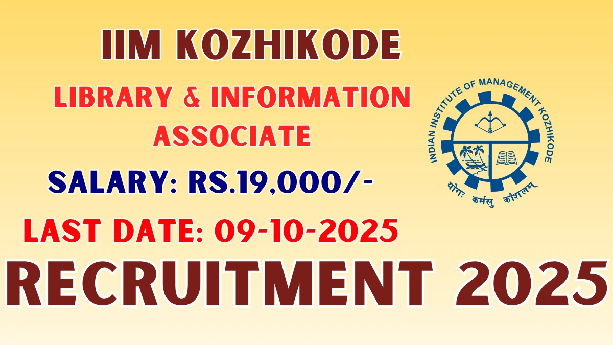 Indian Institute of Management Kozhikode (IIM Kozhikode) has released an official notification for the recruitment of 03 Library & Information Associate Posts. Interested and eligible candidates can apply Online through the official IIM Kozhikode website. The last date to submit the application form is 09-10-2025. In this article, you’ll find the IIM Kozhikode Library & Information Associate Posts recruitment details, including eligibility criteria, age limit, salary structure, selection process, application steps, and direct links to the official notification and Online application form.