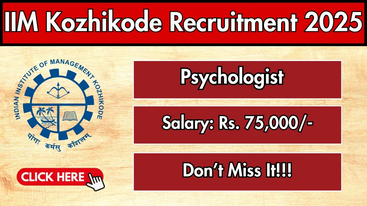 Indian Institute of Management Kozhikode (IIM Kozhikode) has released an official notification for the recruitment of 01 Psychologist Posts. Interested and eligible candidates can apply Online through the official IIM Kozhikode website. The last date to submit the application form is 26-10-2025. In this article, you’ll find the IIM Kozhikode Psychologist Posts recruitment details, including eligibility criteria, age limit, salary structure, selection process, application steps, and direct links to the official notification and Online application form.