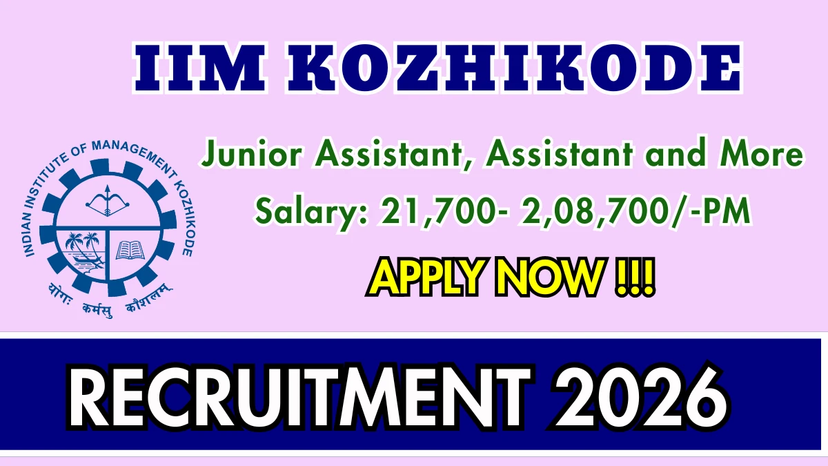 Indian Institute of Management Kozhikode (IIM Kozhikode) Recruitment 2026: Indian Institute of Management Kozhikode has released the official notification for 21 Various Administrative posts, inviting applications from eligible candidates in Kerala. This recruitment provides an excellent opportunity for candidates seeking stable and well-paid government jobs.