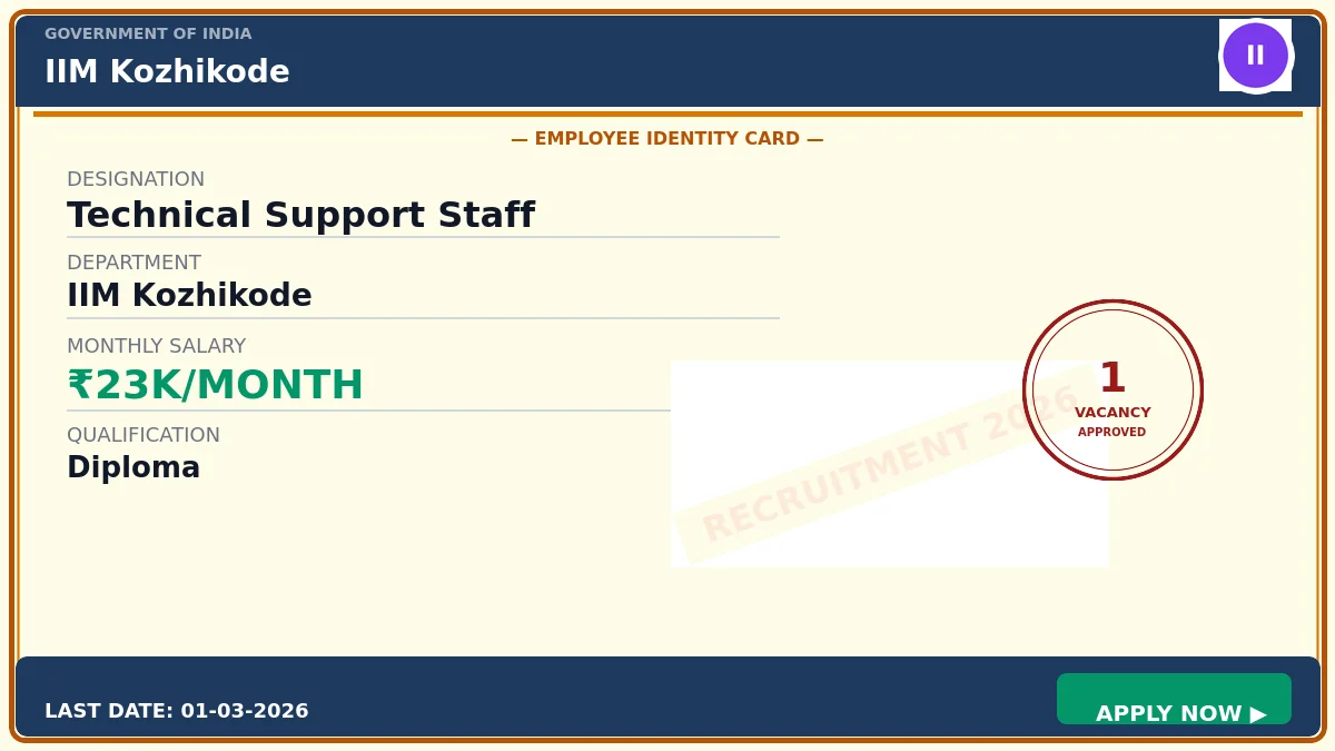 IIM Kozhikode Technical Support Staff (MEP Maintenance) Recruitment 2026 - Overview