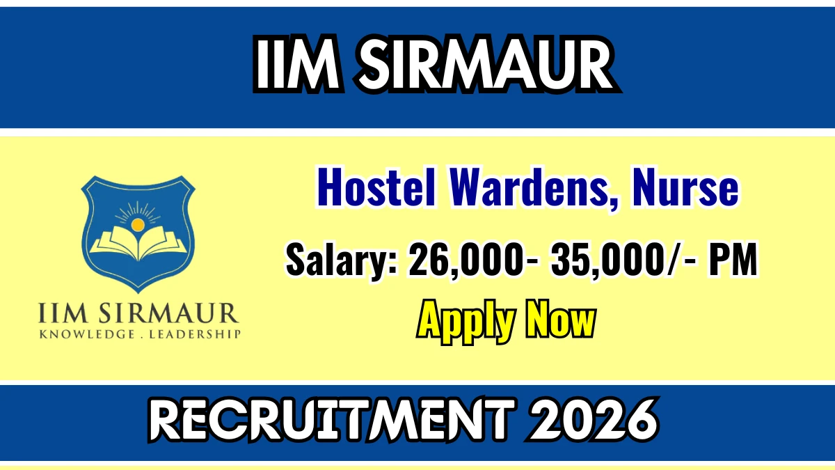 Indian Institute of Management Sirmaur (IIM Sirmaur) has officially released a notification for the recruitment of 3 Hostel Wardens and Nurse Posts. This recruitment drive offers a great opportunity for candidates looking for government jobs. Interested and eligible candidates can apply by sending their resume and documents to the official email address. The email application must be submitted on or before 20-03-2026. Candidates are advised to send their applications well before the deadline.
