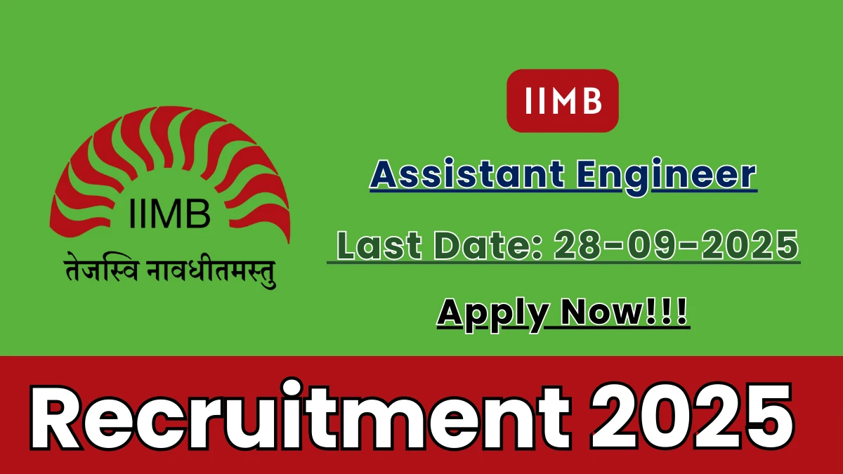 The Indian Institute of Management Bangalore (IIMB) Recruitment 2025 for posts of Assistant Engineer. Candidates with B.Tech/B.E, Diploma Can Apply Online. The online application opens on 12-09-2025, and closes on 28-09-2025. The candidate shall apply online through IIMB website, iimb.ac.in.