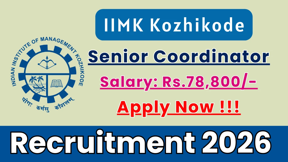 Indian Institute of Management Kozhikode (IIMK Kozhikode) has released an official notification for the recruitment of 01 Senior Coordinator Posts. Interested and eligible candidates can apply Offline through the official IIMK Kozhikode website. The last date to submit the application form is 10-03-2026. In this article, you’ll find the IIMK Kozhikode Senior Coordinator Posts recruitment details, including eligibility criteria, age limit, salary structure, selection process, application steps, and direct links to the official notification and Offline application form.