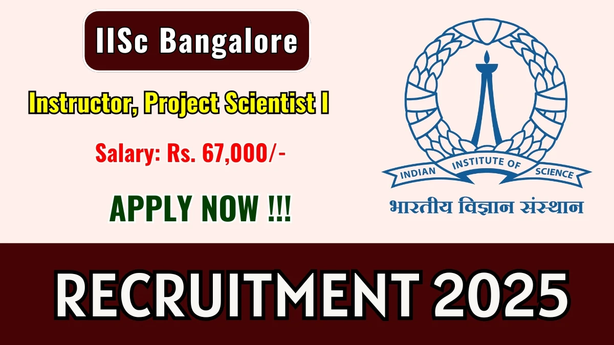 Indian Institute of Science Bangalore (IISc Bangalore) has released an official notification for the recruitment of 06 Instructor, Project Scientist I Posts. Interested and eligible candidates can apply Online through the official IISc Bangalore website. The last date to submit the application form is 14-10-2025. In this article, you’ll find the IISc Bangalore Instructor, Project Scientist I Posts recruitment details, including eligibility criteria, age limit, salary structure, selection process, application steps, and direct links to the official notification and Online application form.
