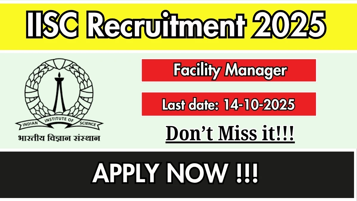 Indian Institute of Science (IISC) has released an official notification for the recruitment of 01 Facility Manager Posts. Interested and eligible candidates can apply Online through the official IISC website. The last date to submit the application form is 14-10-2025. In this article, you’ll find the IISC Facility Manager Posts recruitment details, including eligibility criteria, age limit, salary structure, selection process, application steps, and direct links to the official notification and Online application form.