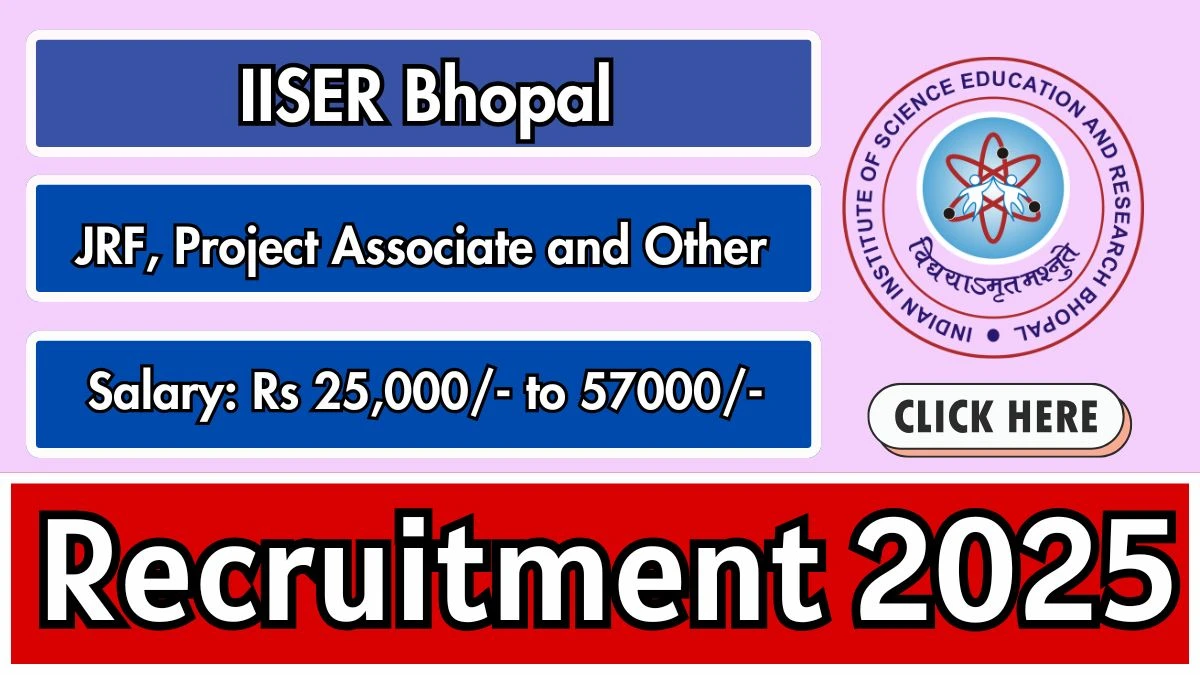 Indian Institute of Science Education and Research Bhopal (IISER Bhopal) has released an official notification for the recruitment of Junior Research Fellow, Project Associate and Other Posts. Interested and eligible candidates can apply Offline through the official IISER Bhopal website. The last date to submit the application form is 12-10-2025. In this article, you’ll find the IISER Bhopal Junior Research Fellow, Project Associate and Other Posts recruitment details, including eligibility criteria, age limit, salary structure, selection process, application steps, and direct links to the official notification and Offline application form.