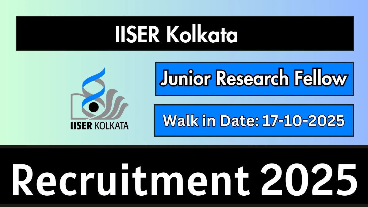 Indian Institute of Science Education and Research (IISER Kolkata) Recruitment 2025 for 01 posts of Junior Research Fellow. Candidates with M.Sc, M.E/M.Tech, MS Can attend the walkin. The Walk-in on 17-10-2025. For detailed information please visit IISER Kolkata official website, iiserkol.ac.in.