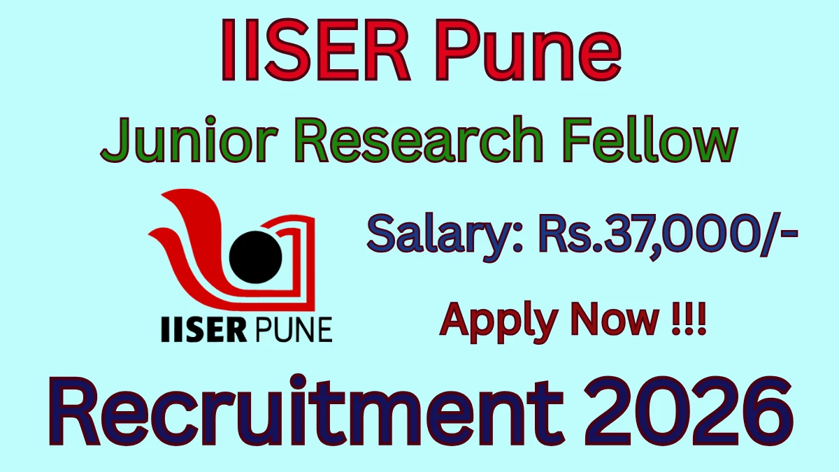The Indian Institute of Science Education and Research Pune (IISER Pune) Recruitment 2026 for posts of 01 Junior Research Fellow. Candidates with M.Sc Can Apply Offline. The Offline application opens on 08-01-2026, and closes on 16-01-2026. The candidate shall apply Offline through IISER Pune website, iiserpune.ac.in.