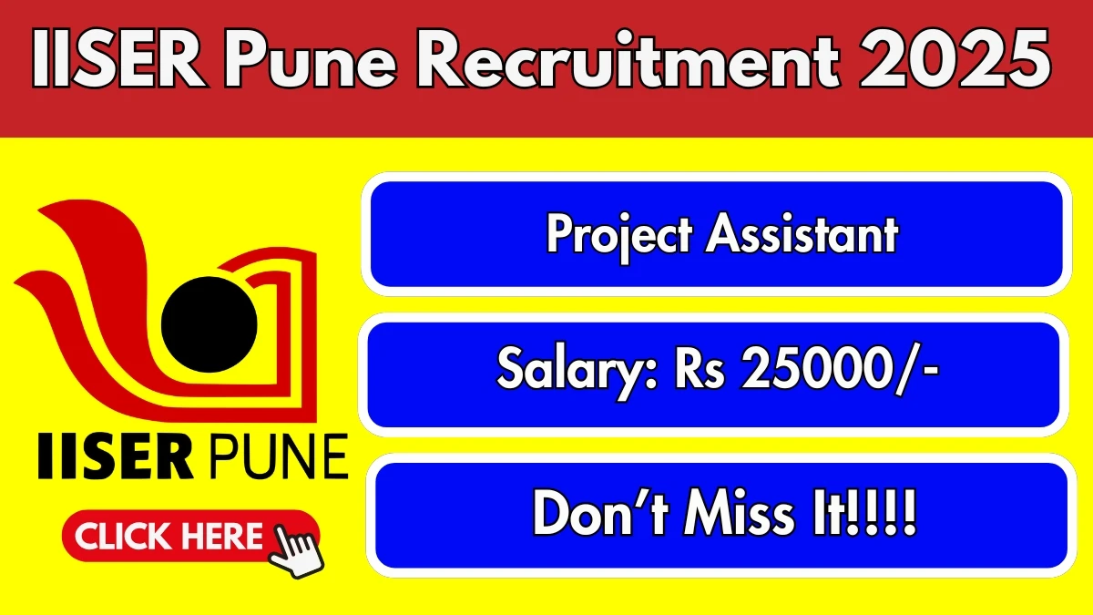 Indian Institute of Science Education and Research (IISER Pune) Recruitment 2025 for 02 posts of Project Assistant. Candidates with M.Sc Can attend the walkin. The Walk-in on 03-11-2025. For detailed information please visit IISER Pune official website, iiserpune.ac.in.