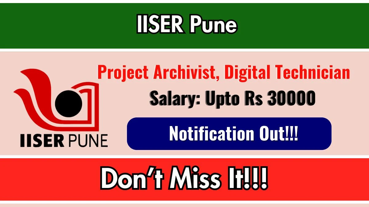 IISER Pune has released the IISER Pune Recruitment 2026 notification for 2 project-based vacancies for the posts of Project Archivist and Digital Technician at the Indian Institute of Science Education and Research, Pune, on a walk-in interview basis.