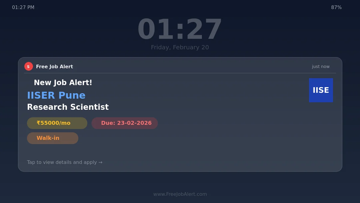 Indian Institute of Science Education and Research Pune (IISER Pune) Recruitment 2026: Indian Institute of Science Education and Research Pune is conducting a Walk-in Interview for 1 Research Scientist posts. This recruitment provides an excellent opportunity for eligible candidates to attend the interview directly without any prior online application.
