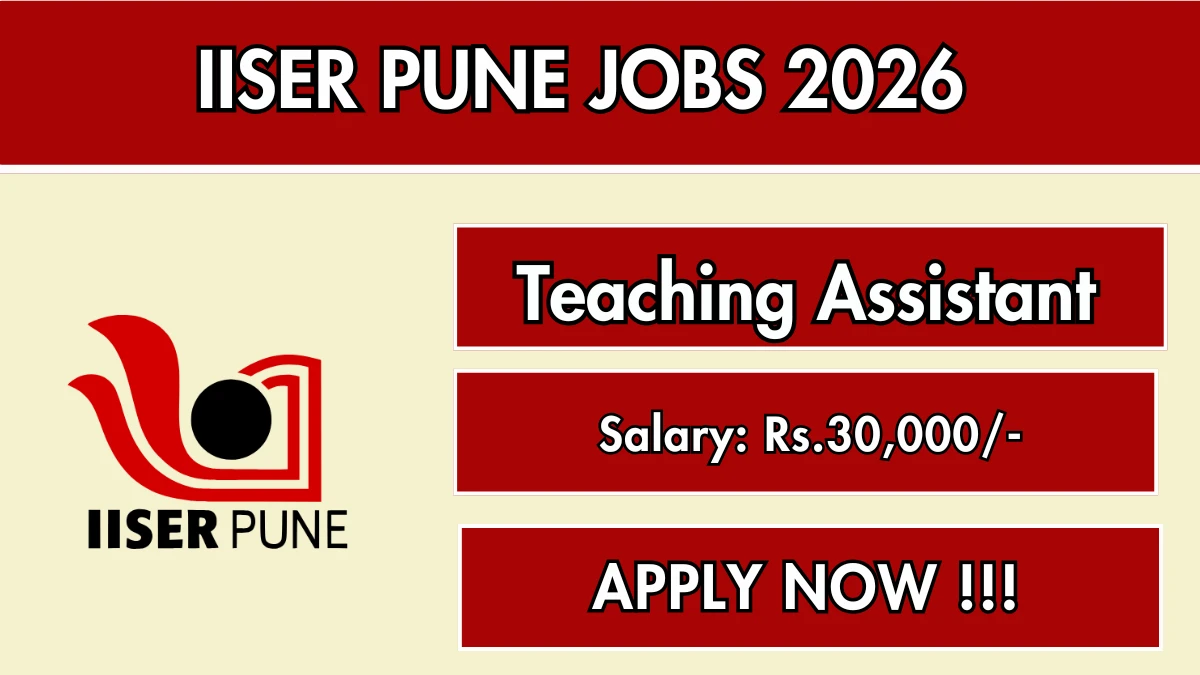 Indian Institute of Science Education and Research Pune (IISER Pune) Recruitment 2026 for 01 posts of Teaching Assistant. Candidates with M.A, M.Sc Can attend the walkin. The Walk-in Available on 13-02-2026. For detailed information please visit IISER Pune official website, iiserpune.ac.in.