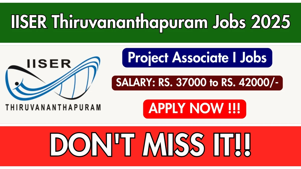 Indian Institute of Science Education and Research Thiruvananthapuram (IISER Thiruvananthapuram) has released an official notification for the recruitment of Project Associate I Posts. Interested and eligible candidates can apply Offline through the official IISER Thiruvananthapuram website. The last date to submit the application form is 23-10-2025. In this article, you’ll find the IISER Thiruvananthapuram Project Associate I Posts recruitment details, including eligibility criteria, age limit, salary structure, selection process, application steps, and direct links to the official notification and Offline application form.