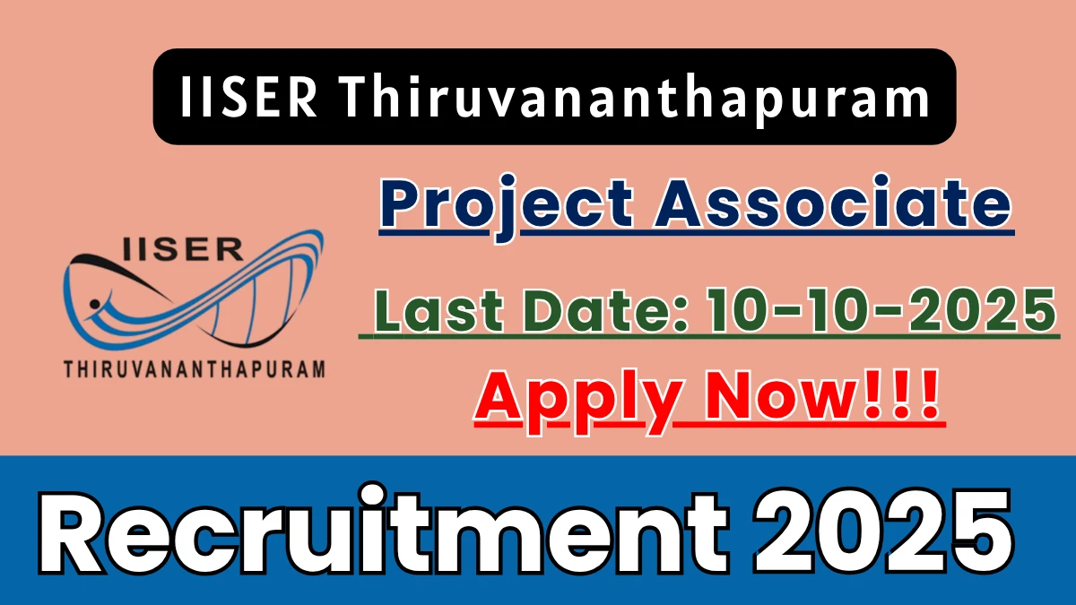 Indian Institute of Science Education and Research Thiruvananthapuram (IISER Thiruvananthapuram) has released an official notification for the recruitment of 01 Project Associate Posts. Interested and eligible candidates can apply Offline through the official IISER Thiruvananthapuram website. The last date to submit the application form is 10-10-2025. In this article, you’ll find the IISER Thiruvananthapuram Project Associate Posts recruitment details, including eligibility criteria, age limit, salary structure, selection process, application steps, and direct links to the official notification and Offline application form.