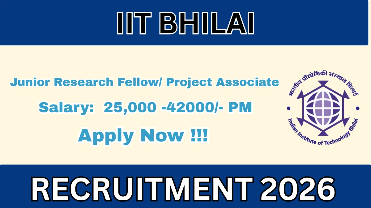 Indian Institute of Technology Bhilai (IIT Bhilai) Junior Research Fellow/ Project Associate Notification 2026 has been released on the official website of IIT Bhilai. A total of 1 vacancy has been announced through the IIT Bhilai Junior Research Fellow/ Project Associate Recruitment 2026.