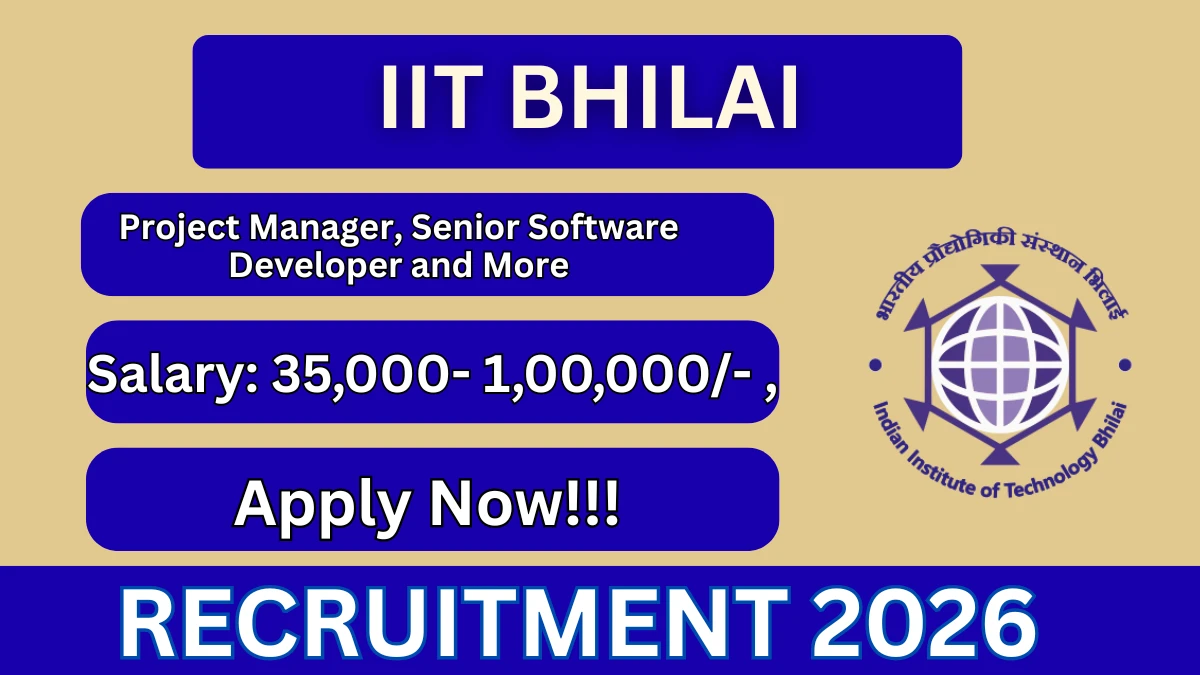 The Indian Institute of Technology Bhilai (IIT Bhilai) Recruitment 2026 for 3 Project Manager, Senior Software Developer and More posts. Candidates with PhD, ME/MTech/MBA, BE/BTech, M.Sc., MCA, or PG Diploma in relevant fields can apply Online. The online application closes on 24-04-2026. The candidate shall apply online through IIT Bhilai official website.